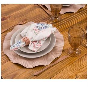 Jogo Americano Copa E Cia Avulso Luna Wave Rosê Jogo Americano Copa e Cia Avulso Luna Wave Rosê - Características Gerais do Produto: - Composição: 75% Polipropileno (Plástico) e 25 % Poliéster. - Detalhes: Flexível.; Peça Vendida de Forma Avulsa (Individual).; Design Exclusivo Copa&Cia.; Armazenar o produto aberto e na horizontal; São práticas e versáteis; As cores podem sofrer pequenas alterações de cor, variando de monitor para monitor.; Os objetos que ambientam as fotos não acompanham o produto.; As fotos produzidas são apenas como sugestão de uso com as demais peças da coleção. - Cuidados: Evitar contato com objetos cortantes ou superaquecidos.; Não amassar; Não torcer ou dobrar totalmente o produto.; Não utilizar solventes, abrasivos ou alvejantes.; Limpar manualmente com pano úmido e detergente neutro. - Dimensões (cm): Diâmetro: 38 cm Acompanha o produto: - 1 Peça de Jogo Americano Garantia: - Sem Garantia