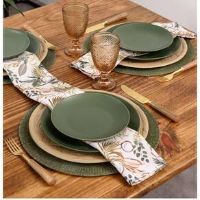 Jogo Americano Copa E Cia Avulso Serenity Verde Jogo Americano Copa e Cia Avulso Serenity Verde - Características Gerais do Produto: - Composição: 100% Poliéster. - Detalhes: Peça Vendida de Forma Avulsa (Individual).; Armazenar o produto aberto e na horizontal; São práticas e versáteis - Cuidados: Evitar contato com objetos cortantes ou superaquecidos.; Não amassar; Não torcer ou dobrar totalmente o produto.; Não utilizar solventes, abrasivos ou alvejantes.; Limpar manualmente com pano úmido e detergente neutro. - Dimensões (cm): Diâmetro: 38 cm Acompanha o produto: - 1 Peça de Jogo Americano Garantia: - Sem Garantia