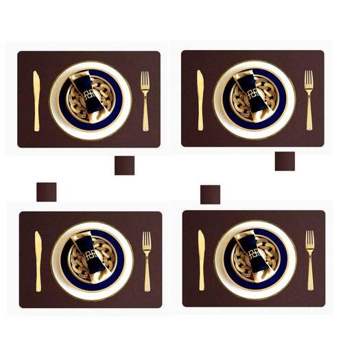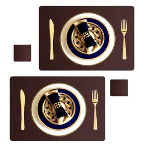 Jogo americano para mesa de jantar 30 unidades + apoio copo Cor: marrom café Tamano: 43x30 Jogo americano couro retangular + porta copos