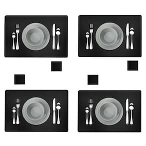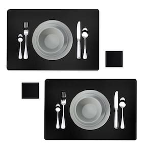 Jogo americano para mesa de jantar 30 unidades + apoio copo Cor: preto Tamano: 43x30 Jogo americano couro retangular + porta copos