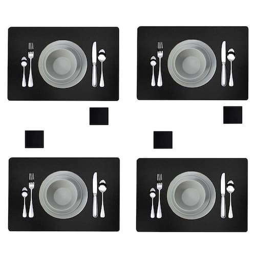 Jogo americano para mesa de jantar 30 unidades + apoio copo Cor: preto Tamano: 43x30 Jogo americano couro retangular + porta copos Kit com 30 jogos americanos + 30 porta copos Nosso jogo americano foi feito para deixar o ambiente mais moderno e prático Fabricado em material de couro impermeável de excelente qualidade, material muito resistente, durável e ecológico. Tem um design moderno, sofisticado com cantos arredondados. Este jogo americano combina com diversos tipos de mesa, jantar, bares, restaurantes, lanchonetes, hotéis e muito mais. Possui um acabamento ecológico, garante um efeito visual único, de forma sustentável. É um material fácil de higienizar e manter. Ideal para acomodar pratos e louças ao servir as refeições. Dimensões do produto c x l : 43,0cm x 30,0cm Especificações do produto Comprimento: 43 cm Largura: 30 cm Cores: diversas escolha a cor de sua preferência Características importantes: limpeza deve ser feita com um pano úmido, o intuito deste produto, além de deixar o ambeinte estiloso e sofisticado, é proteger a mesa ou toalha. Importante os porta copos são enviados na mesma quantidade dos jogo americano. Obs: As imagens podem diferenciar um pouco devido a tela do computador, ou o lote do material. : direto do vendedor Marca: Não Informado