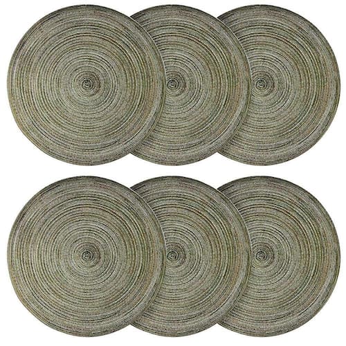 Conjunto Jogo Americano Redondo 38cm Sousplat Verde Mesclado - 6 Lugares O Conjunto Jogo Americano Redondo 38cm Sousplat Verde Mesclado é composto por seis lugares americanos redondos de 38 cm de diâmetro, fabricados em polipropileno e poliester. A elegância é o destaque do conjunto, que proporciona requinte ao dia a dia.