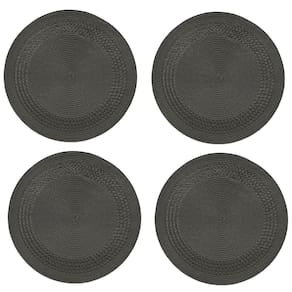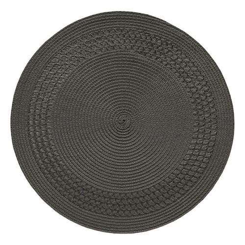 Jogo Americano Redondo entrelacado 4 unidades - Carvao Jogo Americano Redondo Entrelacado tressê na cor Carvão Com uma parte transado dando um charme. Composição: 75% Polipropileno 25% Poliéster Quantidade: Quatro 4 unidade Diâmetro: 38 cm Atenção para os Cuidados Lavar manualmente. Não alvejar. Não secar em tambor. Não passar. Não lavar a seco. O produto é o jogo americano demais elementos de ambientação , são para mostrar como o item poderá ficar bonito em sua mesas, não acompanham.