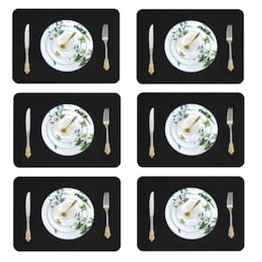 Jogo americano sousplat retangular 50 pçs limpa facil couro Cor: preto Tamano: 43x30 Jogo americano couro retangular + porta copos
