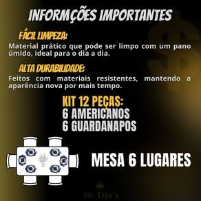 Jogo Americano Sparta Bordado 12 Peças - Rosê Mesa De 6 Lugares