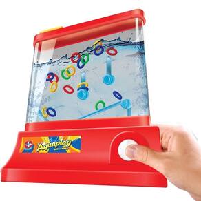 O clássico Aquaplay Argolinha está de volta! O objetivo é pressionar e soltar o botão repetidamente, fazendo com que a água empurre as argolinhas até que elas se encaixem nos bastões.