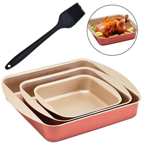 Jogo Assadeira Forma Quadrada 3 Peças Antiaderentes + Pincel