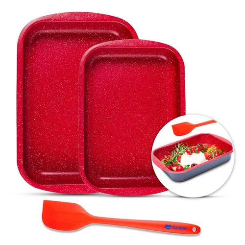 Leve praticidade, saúde e sofisticação para sua cozinha com o Jogo de Assadeiras Duralar Red Marble + Espátula de Silicone Reta 28cm. Com estrutura em alumínio de alta espessura (1,2mm) e revestimento nanocerâmico vermelho premium, as assadeiras proporcionam cozimento uniforme, saudável e sem óleo, enquanto a espátula de silicone garante mais segurança e versatilidade no preparo dos alimentos, sem riscar o revestimento antiaderente.