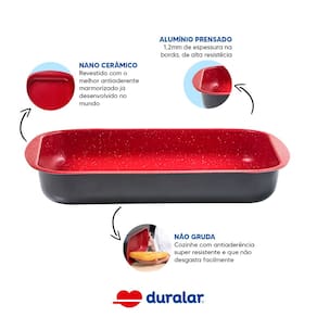 01 Assadeira Retangular Duralar Red Marble 22x33 cm (2,97 litros)