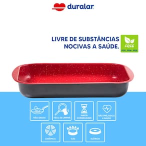 Adicione mais praticidade e estilo à sua cozinha com o Jogo de Assadeiras Duralar Red Marble + Espátula de Silicone. Prepare receitas incríveis com mais saúde, eficiência e elegância — com a qualidade que só a Duralar oferece!