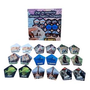Composto por 10 pares de peças, cada animal aparece duas vezes: uma com o nome em português e outra em inglês, mas sempre com a mesma imagem. Dessa forma, a criança associa naturalmente a figura ao nome nos dois idiomas, desenvolvendo vocabulário, memória e raciocínio de forma divertida.