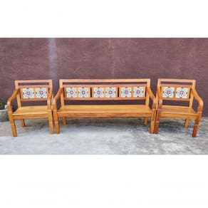 O Conjunto com 1 Banco e 2 Poltronas em Madeira de Demolição é para você que procura uma peça bonita e campestre. Altamente resistente e durável, é um item em estilo rústico com detalhes em ladrilho hidráulico, proporcionando elegância e um diferencial ao seu ambiente. A peça é produzida em madeira de demolição com acabamento em verniz, dando mais resistência e durabilidade no produto. Deixe sua casa ainda mais bonita e sofisticada com o Conjunto com 1 Banco e 2 Poltronas da Sudeste Rústico.
