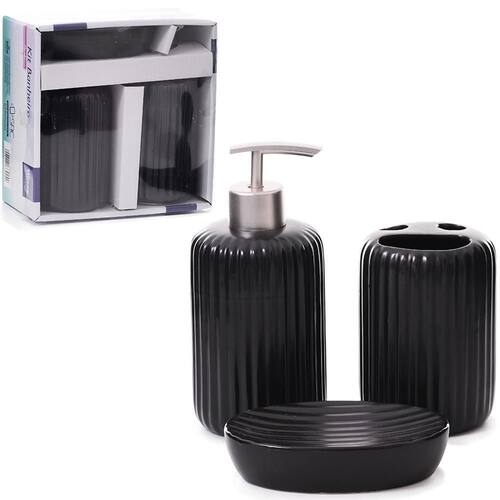 Jogo Banheiro De Porcelana Paski Preto Com 3 Pecas Na Caixa