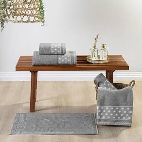 Jogo de Banho Meggy Poá Bolinhas Toalhas Macias 100% Algodão 5 Peças - Cinza Granito