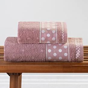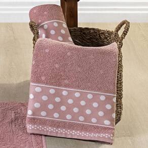Jogo de Banho Meggy Poá Bolinhas Toalhas Macias 100% Algodão 5 Peças - Rosê Descubra o toque macio e o design elegante do Jogo de Banho Meggy Poá. Composto por 5 peças essenciais - 2 Toalhas de Banho, 2 Toalhas de Rosto e 1 Piso, este conjunto foi pensado para elevar a sua experiência diária de autocuidado, proporcionando conforto e sofisticação.