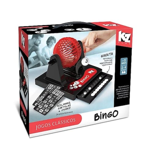 Conteúdo: 1 globo, 1 base com gaveta para guardar as peças, 90 bolinhas numeradas, fichas de marcação e 24 cartelas frente e verso reutilizáveis