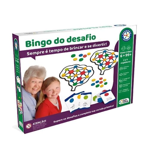 Bingo do Desafio é um jogo divertido e envolvente que estimula o raciocínio lógico, a percepção visual, a coordenação motora, a concentração e a atenção dos jogadores. Uma atividade perfeita para todas as idades, unindo gerações em momentos de aprendizado e diversão. Pais e avós vão adorar participar dessa brincadeira interativa com as crianças, que combina o clássico bingo com perguntas e respostas inteligentes. Fabricante: Pais & Filhos Ref.:7929831 Código Barras: 7908470029831 Idade recomendada: Acima de 6 Anos Dimensões da Embalagem AxLxC : 25X33X6cm do Vendedor: 7 dias do Fabricante: 3 meses Homologação Inmetro: IP-BRI-1432/2021-04 Marca: Não Informado Ean: 7908470029831
