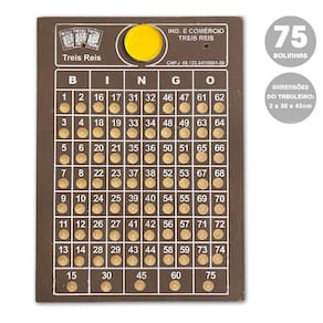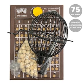 Jogo bingo globo preto nº2 com 75 bolinhas treis reis com o bingo da treis reis você tem diversão garantida em suas festas e eventos. Com acabamento em madeira, ele proporciona um ar retro, que possa ser interessante, já que é um dos mais antigos jogos já criados. Sua qualidade é excelente características: - 1 globo cromado tamanho nº 2, 2 altura: 25cm x largura: 17cm ; - 1 tabuleiro em madeira; - 2 hastes para o globo; - 75 bolas madeira reciclada 21mm ; - numeradas e letradas de 01 até 75 sendo: b - 01 ao 15 i - 16 ao 30 n - 31 ao 45 g - 46 ao 60 o - 61 ao 75 - haste de sustentação: 21cm; - material: metal cromado - referência: tr0088; - dimensões do tabuleiro: 42 comprimento x 30 largura x 2 altura cm; -imagens meramente ilustrativas- atenção: a cor do produto pode variar de acordo com o monitor atenção: o fabricante pode alterar a cor de alguma parte do produto sem aviso prévio. Homologação Inmetro: CE-BRI/ICEPEX-N 01264-25-15 Ean: 7898962955055