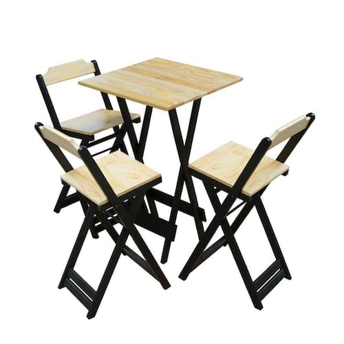 O conjunto mesa e banqueta Bistrô Soberana agrega elegância e conforto, com um toque rustico, será destaque no seu restaurante, bar, bistrô, casa, hotel, ou em qualquer outro ambiente. Seu design garantirá o prestígio de seus convidados e clientes, garantindo total satisfação na decoração do ambiente. CARACTERÍSTICAS:Tipo: ConjuntoModelo: SoberanoCor: l/PretoDIMENSÕES DO PRODUTO:Mesa BistrôAltura: 100cmLargura: 60cmComprimento: 60cm Banqueta BistrôAltura: 91cmLargura: 43cmComprimento: 48,5cmATENÇÃOAS IMAGENS SÃO MERAMENTE ILUSTRATIVAS E PODEM SOFRER VARIAÇÕES DE COR E PEQUENOS DETALHES DE ACORDO COM O SEU MONITOR, ILUMINAÇÃO DO AMBIENTE E ATÉ MESMO A SUA PERCEPÇÃO VISUAL.Jogo Bistro Mesa com 3 Banquetas Soberano Bar em Madeira PadrÃo - l/preto Marca: Preguiçosa