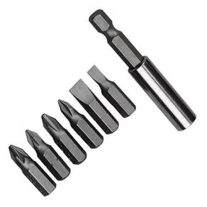 Muito útil para diversos tipos de reparo, o Jogo de Bits com adaptador Magnético 7 peças Mtx, é ideal para apertar e afrouxar parafusos com resistência e segurança, basta verificar o encaixe ideal para o seu trabalho. Para uso profissional e doméstico, este kit é composto por 6 bits nas medidas mais úteis para seu o dia a dia (encaixes philips, fenda e pozidrive). Fabricados em aço inoxidável 45H, combinado com alta dureza (53-54 Hrc), acompanha um adaptador magnético.