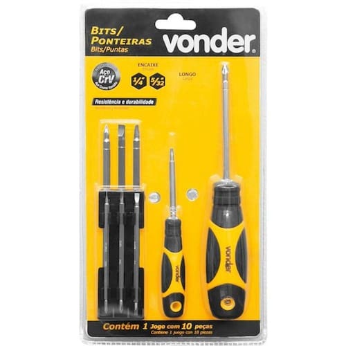 Jogo de bits/ponteiras longo, com 10 peças, encaixe sextavado de 1/4 e 5/32, VONDER