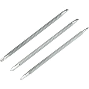 1 Jogo de bits/ponteiras longo, composto por 10 peças, sendo: 1 cabo adaptador 1/4, 1 cabo adaptador 5/32, 4 bits duplo encaixe 1/4(PZ1 x SQ1, PZ2 x SQ2, PH2 x fenda 1/4, PH1 x fenda 3/16) e 4 bits duplo encaixe 5/32 (T8 x T20, PH0 x fenda 5/64, PH1 x fenda 1/8, T15 x fenda 5/32)
