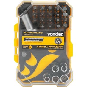 Jogo de bits/ponteiras com 32 peças, encaixe sextavado de 1/4, VONDER