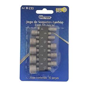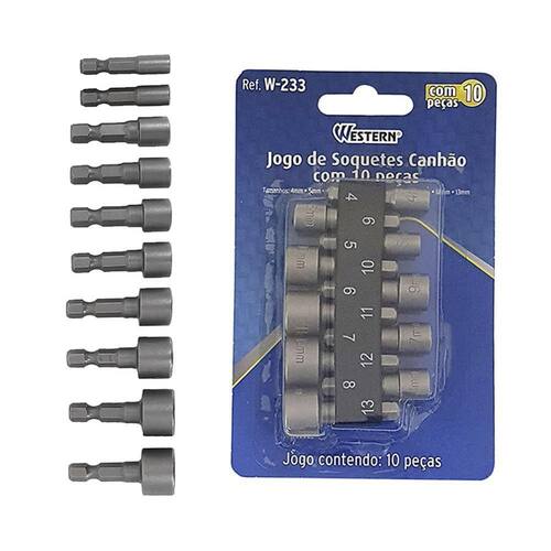 Jogo de soquetes canhão produzido em aço carbono e PVC de alta qualidade, oferecendo durabilidade, resistência e ótimo desempenho. Marca: western Características: -medidas: 4, 5, 6, 7, 8, 9, 10, 11, 12 e 13mm. -material: Aço carbono e PVC. -cor: Cinza. Conteúdo: -10 soquetes canhão. Aplicação: ideal para parafusar e desparafusar porcas e parafusos de máquinas, motores, móveis e etc. Código: w233 Ean: 7896980425598