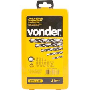 1 Jogo de brocas de aço rápido DIN 338, com 25 peças, sendo: 1,0 mm ? 1,5 mm ? 2,0 mm ? 2,5 mm ? 3,0 mm ? 3,5 mm ? 4,0 mm ? 4,5 mm ? 5,0 mm ? 5,5 mm ? 6,0 mm ? 6,5 mm ? 7,0 mm ? 7,5 mm ? 8,0 mm ? 8,5 mm ? 9,0 mm ? 9,5 mm ? 10,0 mm ? 10,5 mm ? 11,0 mm ? 11,5 mm ? 12,0 mm ? 12,5 mm ? 13,0 mm