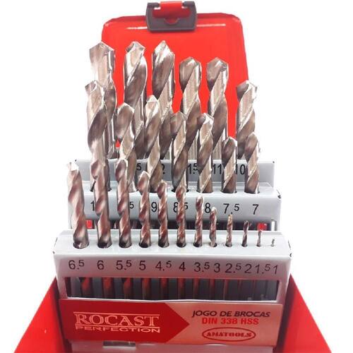 O Jogo de Brocas Helicoidais Com Haste Cilíndrica em HSS Com 25 Peças 5,0161 - Rocast, é um conjunto de ferramentas cortantes utilizadas para fazer furos cilíndricos e acabamentos em peças de diferentes tipos de materiais. Elas proporcionam a melhor combinação de taxa entre e precisão; Além disso Conseguem manter o corte da ferramenta por um período maior. Descrição do Produto: Material: Aço Rápido. Acabamento: Brilhante. Haste: Cilíndrica. Aplicação: usinagem de aço com dureza até 45 HRC. Apresentação: estojo metálico/blister. Norma: DIN 338 N. Composição do Jogo de Brocas de 10 á 13 Milímetros: 1,0 - 1,5 - 2,0 - 2,5 - 3,0 - 3,5 - 4,0 - 4,5 - 5,0 - 5,5 - 6,0 - 6,5 - 7,0 - 7,5 - 8,0 - 8,5 - 9,0 - 9,5 - 10,0 - 10,5 - 11,0 - 11,5 - 12,0 - 12,5 - 13,0. Referência: 5,0161. Cód. De Fábrica: 5,0161. Marca: Rocast.