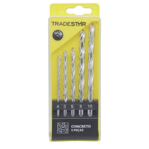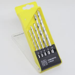 Jogo de brocas, ideal para concreto ou tijolo,jogo com 5 peças: 4, 5, 6, 8 e 10 mm.Conteúdo:Brocas: 4, 5, 6, 8 e 10mmDetalhes importantesConfira algumas vantagens de comprar com a jjc ferramentas: