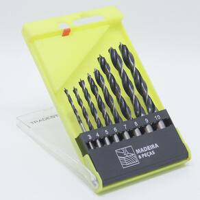 DescriçãoJogo de brocas para madeira kit com 8 peças Broca 3 pontas, especifico para madeiraFabricado em aço especial, perfeito para a madeira.Produz um furo mais limpo, rápido e com menor esforço.São adequadas para furar madeiras moles, duras, compensados de pinho, de virola, aglomerados, fórmicas, plásticos e fibras sintéticas.Kit com as seguintes medidas:3mm x 6cm4mm x 7,5cm5mm x 8,5cm6mm x 9cm7mm x 10,5cm8mm x 10,5cm9mm x 11,5cm10mm x 12cmDetalhes importantesConfira algumas vantagens de comprar com a jjc ferramentas: Marca: Tradestar