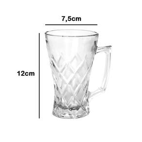 Caneca confeccionada em vidro, um material durável que confere resistência e qualidade ao produto, sua alça lateral facilita na hora de manusear a peça, proporcionando segurança e firmeza.