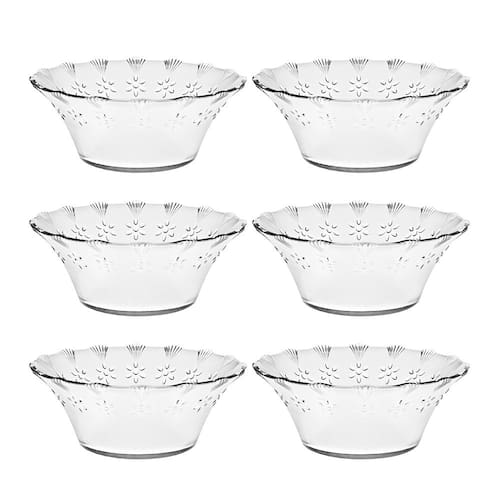 O jogo é composto por 6 peças pequenas para servir sua família e convidados. Com detalhes lapidados, as peças são cheias de personalidade e vão surpreender seus convidados com o seu design. Ideal para servir qualquer tipo de sobremesa, as tigelas também podem ser utilizadas como petisqueira.