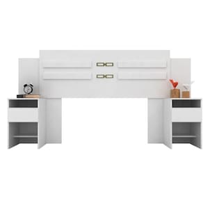 A Cabeceira foi desenvolvida para quem valoriza detalhes e usabilidade, possui duas mesas de cabeceira acopladas com gavetas, que tem profundidade ideal para seus pertences e ainda tem os nichos acima das gavetas, perfeitos para seus objetos decorativos.