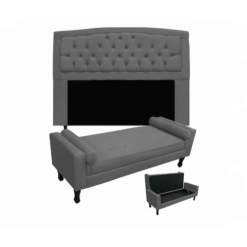 Jogo Cabeceira Geovana + Calçadeira Fênix Solteiro 90cm Suede Cinza - LM DECOR