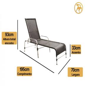Espreguiçadeira Catar: - Altura: 37 cm - Largura: 62 cm - Profundidade: 195 cm - Suporta até 200 kg - Com regulagem
