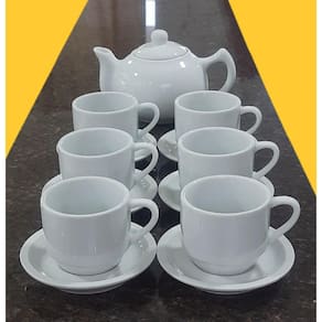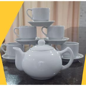 Embalagem contêm 13 peças (1 bule chaleira, 6 xícaras, 6 pires)