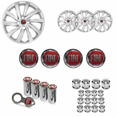 JOGO DE CALOTA ARO 14 + EMBLEMAS RESINADOS + TAMPA DE VENTIL COM ANTIFURTO + CAPA DE PARAFUSO