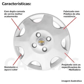 Jogo calota gm corsa celta classic aro 13 com emblema 118cb Calota em plástico de alta resistência, Fabricado pela grid calotas com os mesmos padrões e exigências da montadora. Com logotipo incluso. Jogo de calotas para a linha chevrolet para roda de ferro aro 13. Características: - fabricado em plástico resistente - com dupla camada de verniz - resistente a água e calor - feito de acordo com os padrões da montadora - fixação: por parafusos - furação: 4x100 - cubo: baixo - cor: prata - referência: 118cb - marca: grid calotas Itens inclusos: - um 1 kit com quatro 4 calotas com emblema incluso. Dimensões unitário - diâmetro: 37 cm - altura: 4 cm Instalação A instalação é feita de forma simples, podendo ser feita por você mesmo. Não necessita retirar todos os parafusos. de 30 dias para defeitos de fabricação. Sobre o envio Marca: Não Informado