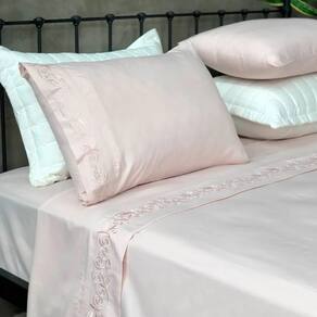 O diferencial está no delicado bordado inglês aplicado no sobre lençol e nas fronhas, que traz elegância e charme à sua cama. Além disso, o lençol com elástico garante praticidade e ajuste perfeito ao colchão.
