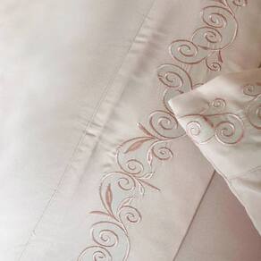 Acabamento: Bordado aplicado no sobre lençol e nas fronhas