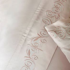 Acabamento: Bordado aplicado no sobre lençol e nas fronhas