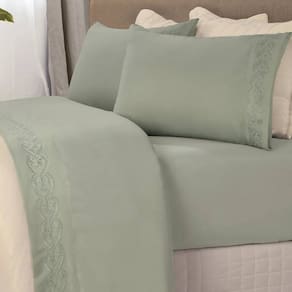 O diferencial está no delicado bordado inglês aplicado no sobre lençol e nas fronhas, que traz elegância e charme à sua cama. Além disso, o lençol com elástico garante praticidade e ajuste perfeito ao colchão.