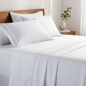 2. As fronhas têm bordado Sim, as duas fronhas são bordadas com o mesmo padrão elegante do lençol superior.