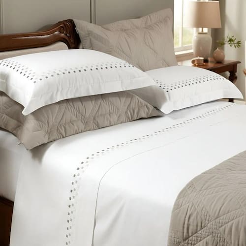 Imagine deitar-se em uma cama digna de hotel cinco estrelas, sentindo a suavidade aveludada do algodão egípcio e a delicadeza do bordado que traz um toque clássico e refinado ao ambiente.