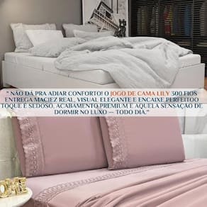 Não deixe para depois: sua cama merece a experiência única que só o Jogo de Cama Lily 300 fios Queen Size pode proporcionar. Além de elegante, é durável, fácil de cuidar e feito para deixar sua cama impecável.