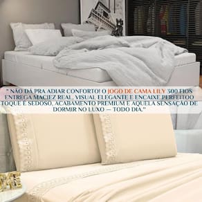 Não deixe para depois: sua cama merece a experiência única que só o Jogo de Cama Lily 300 fios Queen Size pode proporcionar. Além de elegante, é durável, fácil de cuidar e feito para deixar sua cama impecável.
