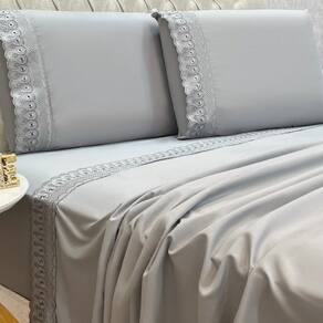 Jogo Cama Box Queen Size Lily 300 fios Bordado Inglês Extra Macio