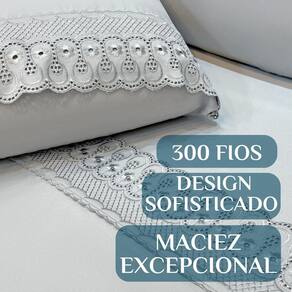 Jogo Cama Box Queen Lily 300 Fios Bordado Inglês Extra Macio